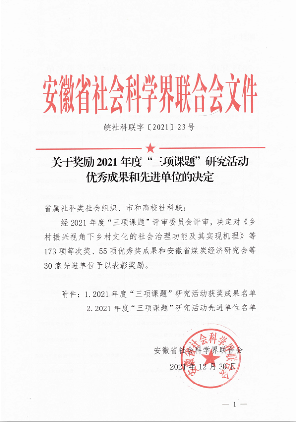 关于奖励2021年度“三项课题”研究活动优秀成果和先进单位的决定